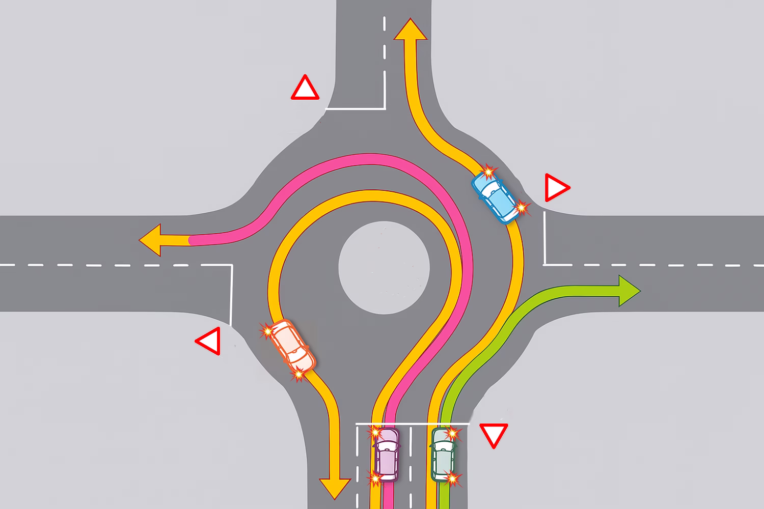 Many accidents at roundabouts happen because drivers are unsure or careless. Here are some common errors to avoid: